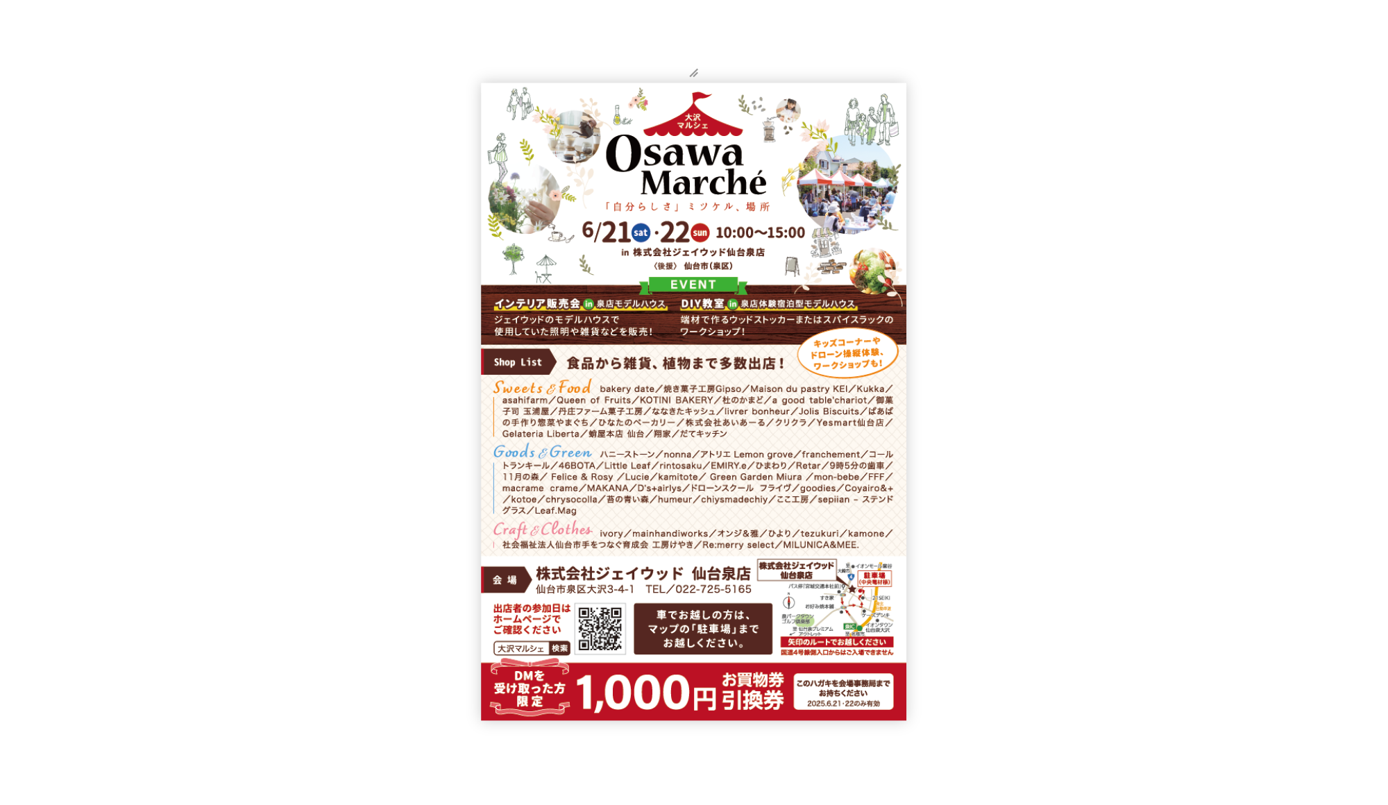 株式会社ジェイウッド様が開催するマルシェ、「大沢マルシェ」のホームページを制作しました。